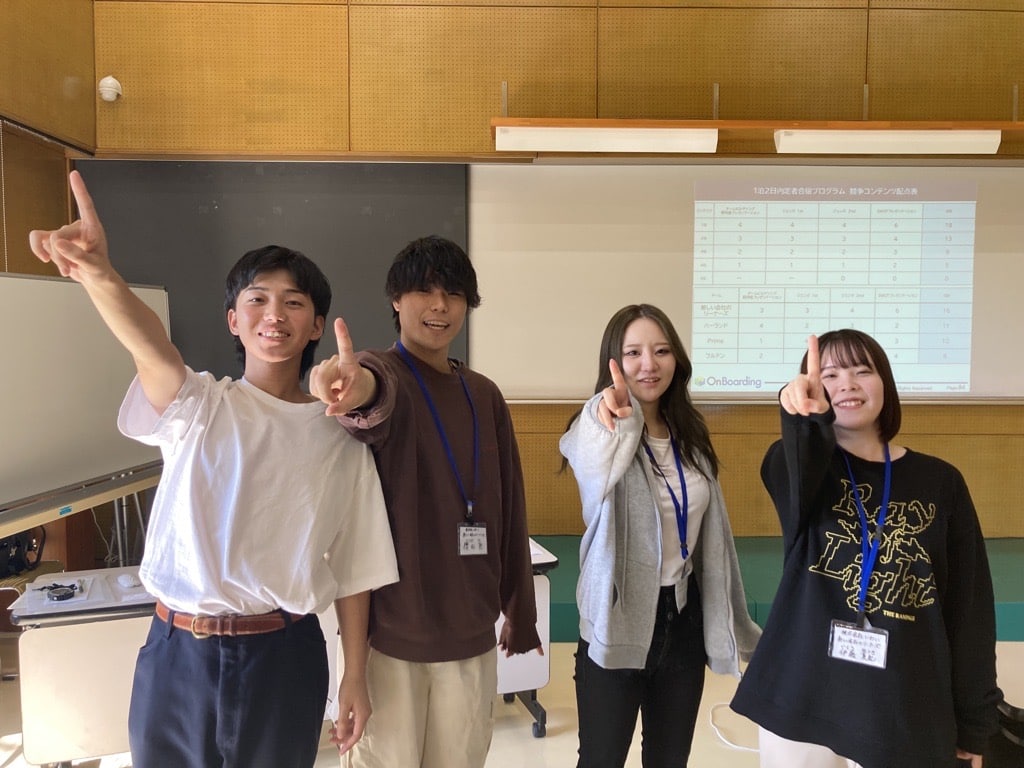 他の参加企業様では、ここで初めて顔を合わせる内定者さんもいたようですが、いわいの内定者4名は懇親会、内定式を経て、すっかり仲良くなり不安なく参加できたようです。