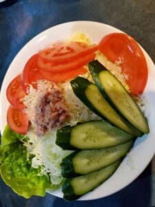 普段ナムルから食べていますが、今回はサラダとトマトスライスを先に頂きました。和風ドレッシングが好きなのでサラダに沢山かけて食べました。サラダも美味しい!